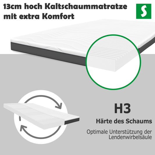 Ergonomische 7-Zonen Kaltschaummatratze – 13 cm Höhe, H3 Härtegrad