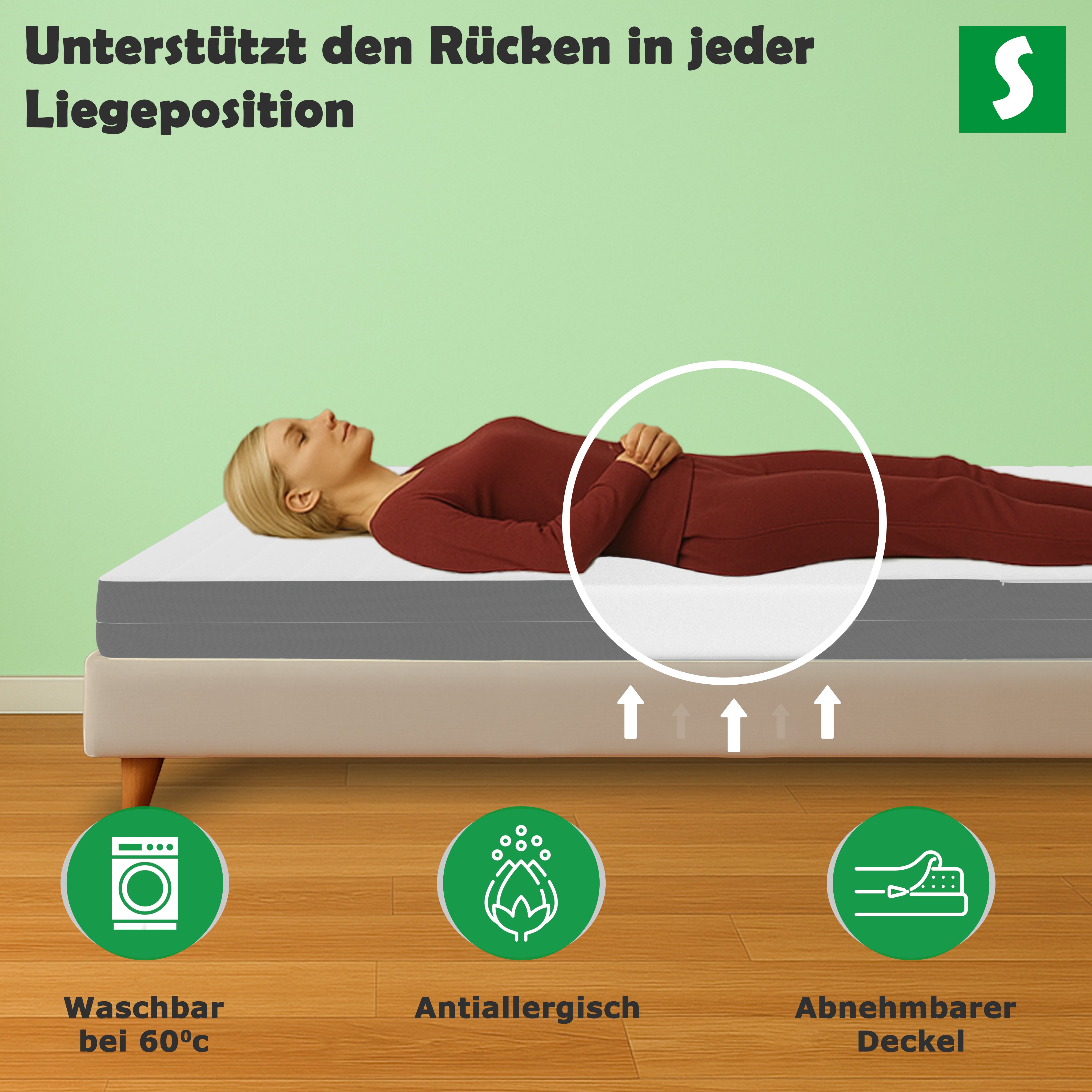 7-Zonen-Kaltschaum: Optimale Druckentlastung und ergonomische Anpassung für Rücken-, Seiten- und Bauchschläfer.
